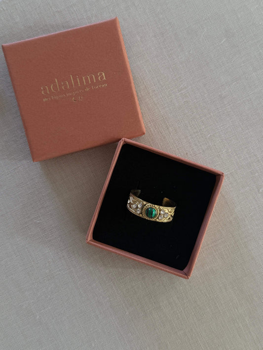 Oui, plusieurs de nos bagues sont ornées de pierres naturelles , connues pour leurs vertus énergétiques et apaisantes. Par exemple, l'améthyste pour la relaxation, le quartz rose pour l'amour, et la turquoise pour la communication. Chaque pierre est choisie avec soin pour apporter à la fois beauté et bien-être.