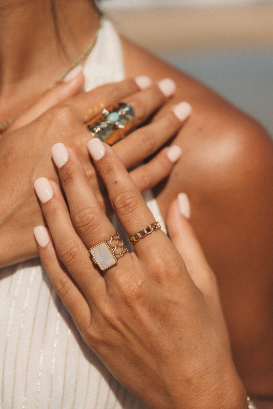 Pour celles et ceux qui recherchent des bijoux alliant beauté et bien-être , nos bagues en acier inoxydable ornées de pierres naturelles sont le choix parfait. Chaque pierre est soigneusement sélectionnée pour ses vertus énergétiques et ses propriétés apaisantes. Par exemple, l'améthyste favorise la relaxation, le quartz rose soutient l'amour et la guérison, tandis que la turquoise favorise la communication. Portez une bague qui ne se contente pas de sublimer votre look, mais vous apporte également des bienfaits au quotidien.