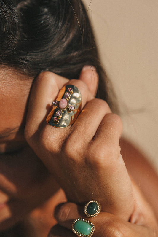 Oui, plusieurs de nos bagues sont ornées de pierres naturelles , connues pour leurs vertus énergétiques et apaisantes. Par exemple, l'améthyste pour la relaxation, le quartz rose pour l'amour, et la turquoise pour la communication. Chaque pierre est choisie avec soin pour apporter à la fois beauté et bien-être.