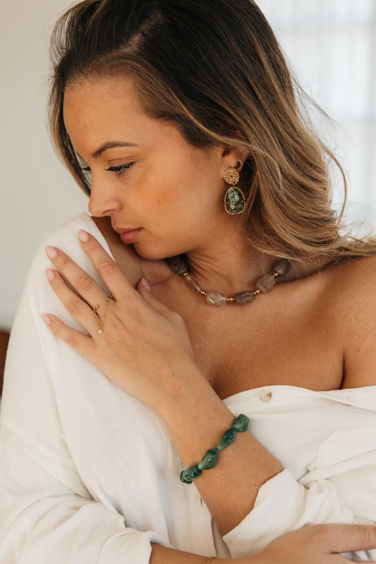 Pour celles et ceux qui recherchent des bijoux alliant beauté et bien-être , nos bagues en acier inoxydable ornées de pierres naturelles sont le choix parfait. Chaque pierre est soigneusement sélectionnée pour ses vertus énergétiques et ses propriétés apaisantes. Par exemple, l'améthyste favorise la relaxation, le quartz rose soutient l'amour et la guérison, tandis que la turquoise favorise la communication. Portez une bague qui ne se contente pas de sublimer votre look, mais vous apporte également des bienfaits au quotidien.