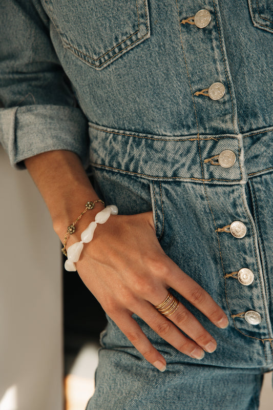 L’accumulation de bracelets est une tendance incontournable. N'hésitez pas à combiner plusieurs modèles de différentes textures, matériaux et couleurs pour créer un look unique qui vous ressemble. Que vous optiez pour des bracelets en acier inoxydable, élastiques ou en pierres naturelles, chaque combinaison apportera une touche personnelle et moderne à votre tenue.