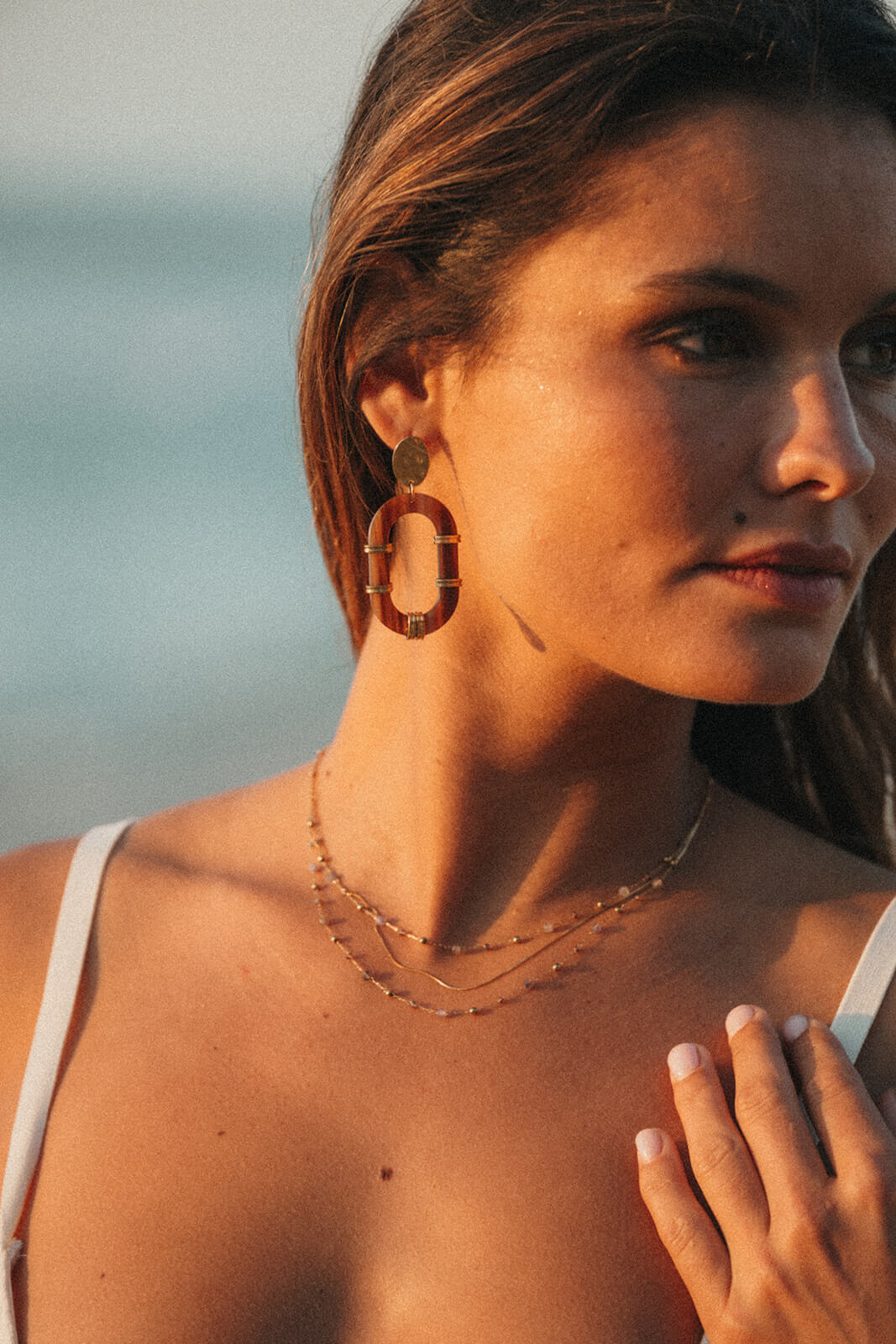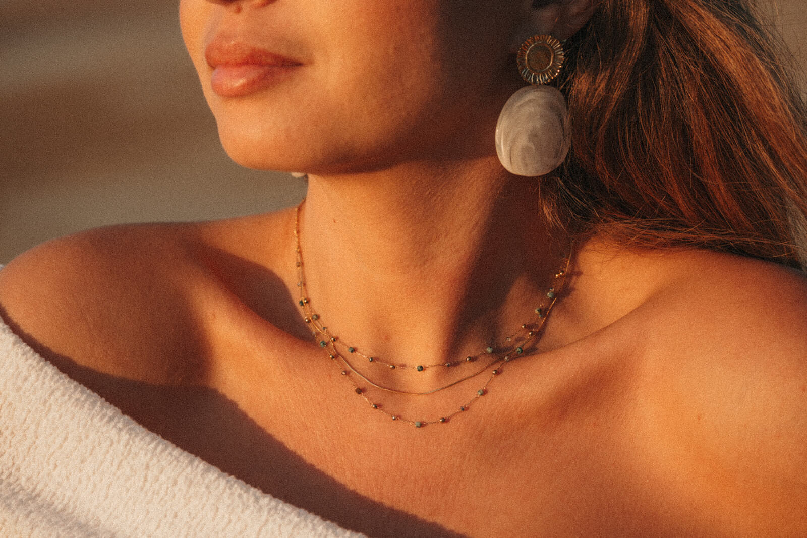 🌊 Inspiré par l’océan et la lumière, ce collier 3 rangs sublime le décolleté en toute subtilité. Sa superposition naturelle apporte à la fois modernité et élégance, idéal pour compléter un look bohème chic ou une tenue plus habillée.