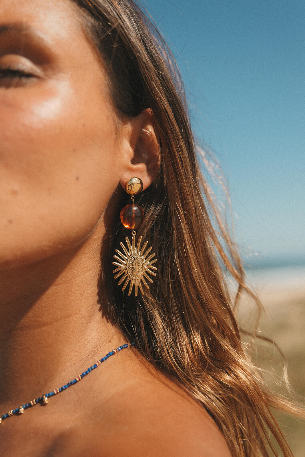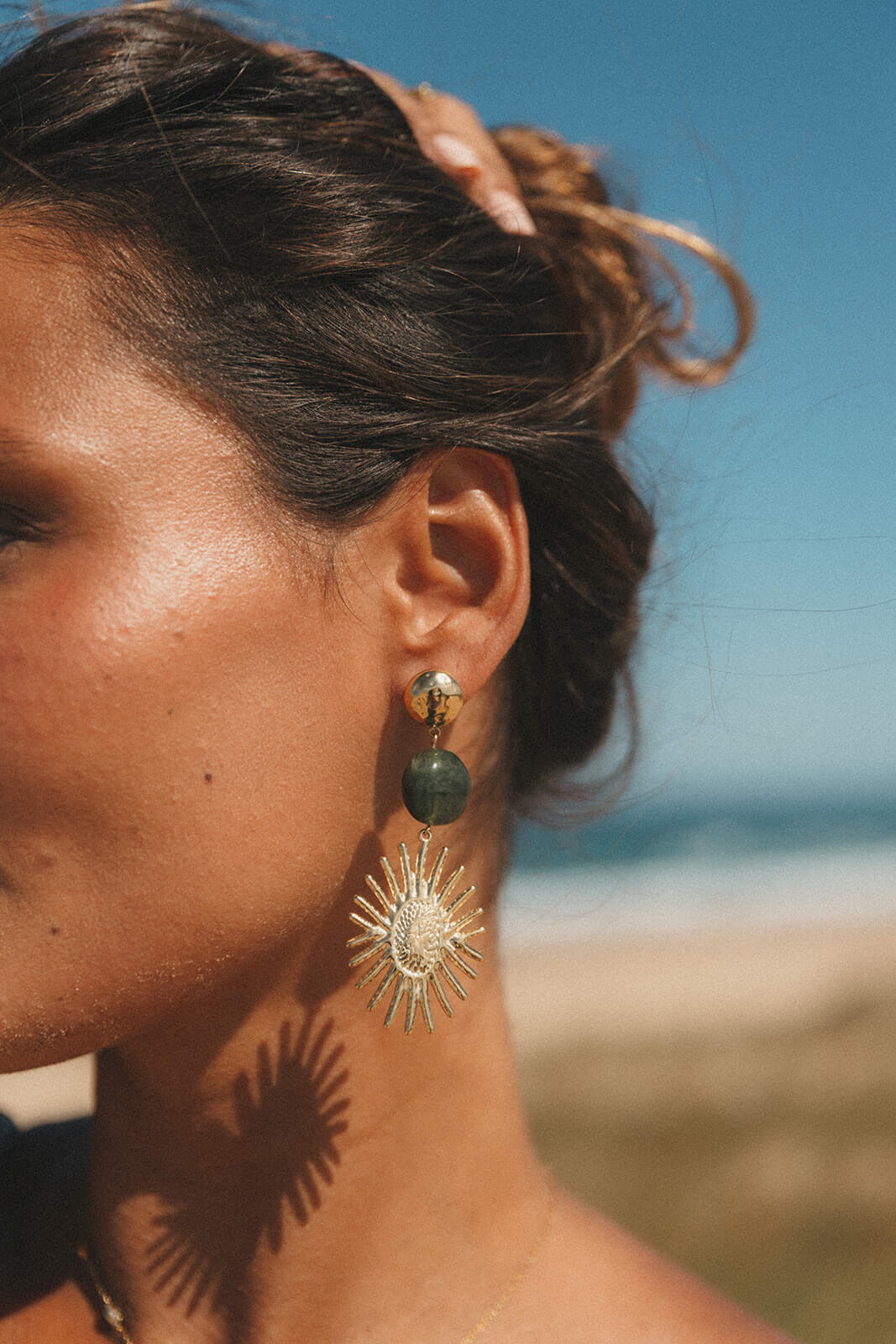 Boucles d’oreilles longues colorées en pierres naturelles.