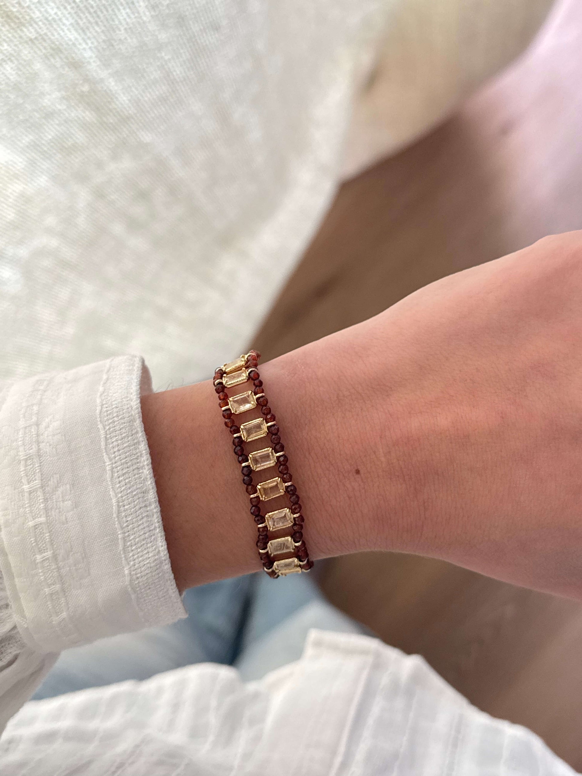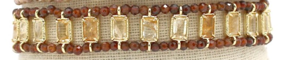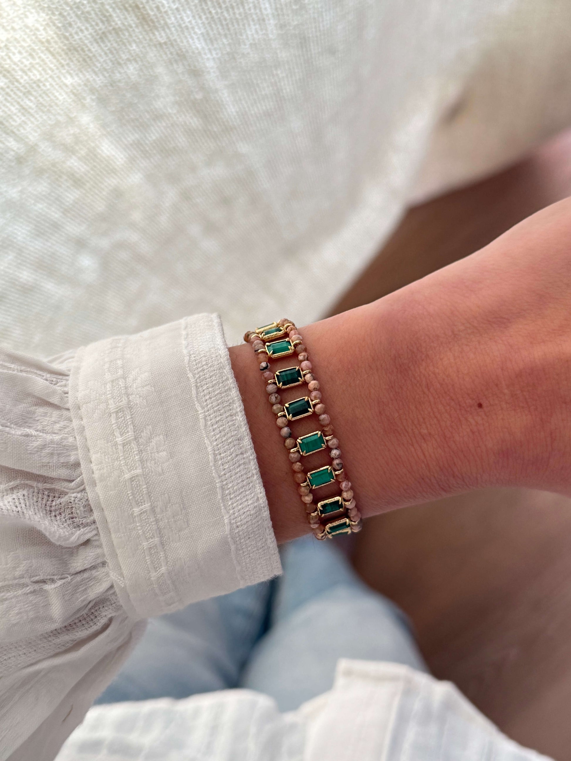 Craquez pour ce sublime bracelet double rangs composé de perles fines et de pierres naturelles rectangulaires serties.