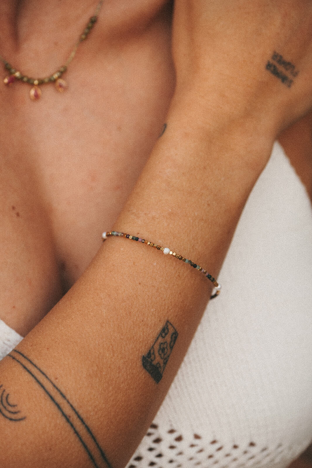 Le bracelet Meryl sera parfait pour cet été. Avec ses pierres naturelles et ses perles d'eau douces, il va habiller votre look.