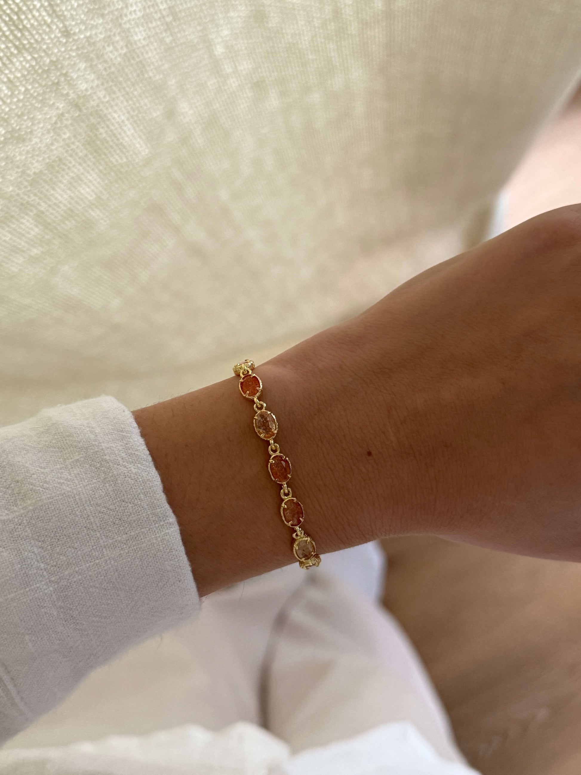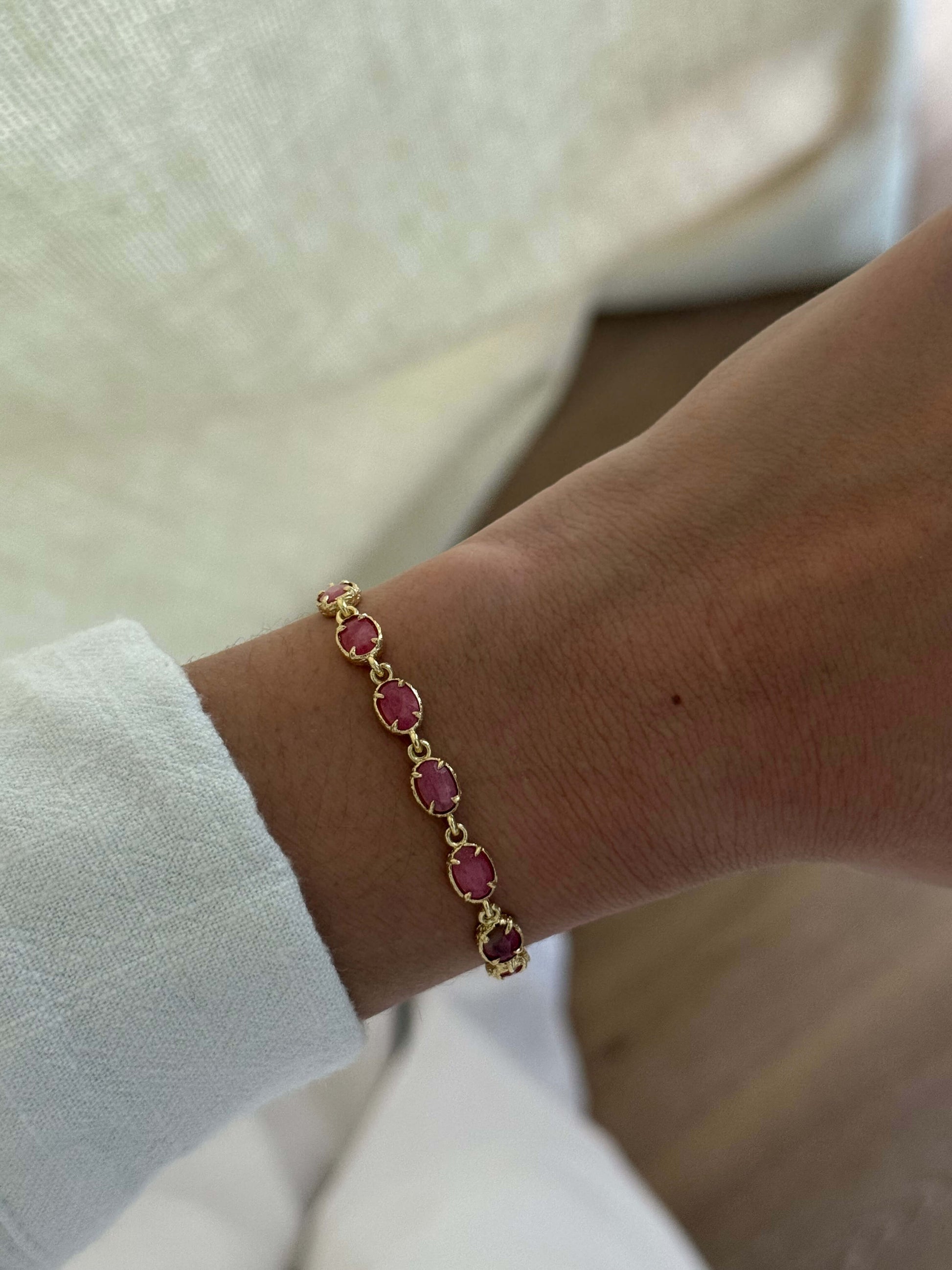 Apportez couleur et éclat à votre poignet avec ce bracelet raffiné orné de pierres naturelles de tourmaline. Chaque pierre, aux nuances uniques, confère au bijou une identité singulière et élégante.