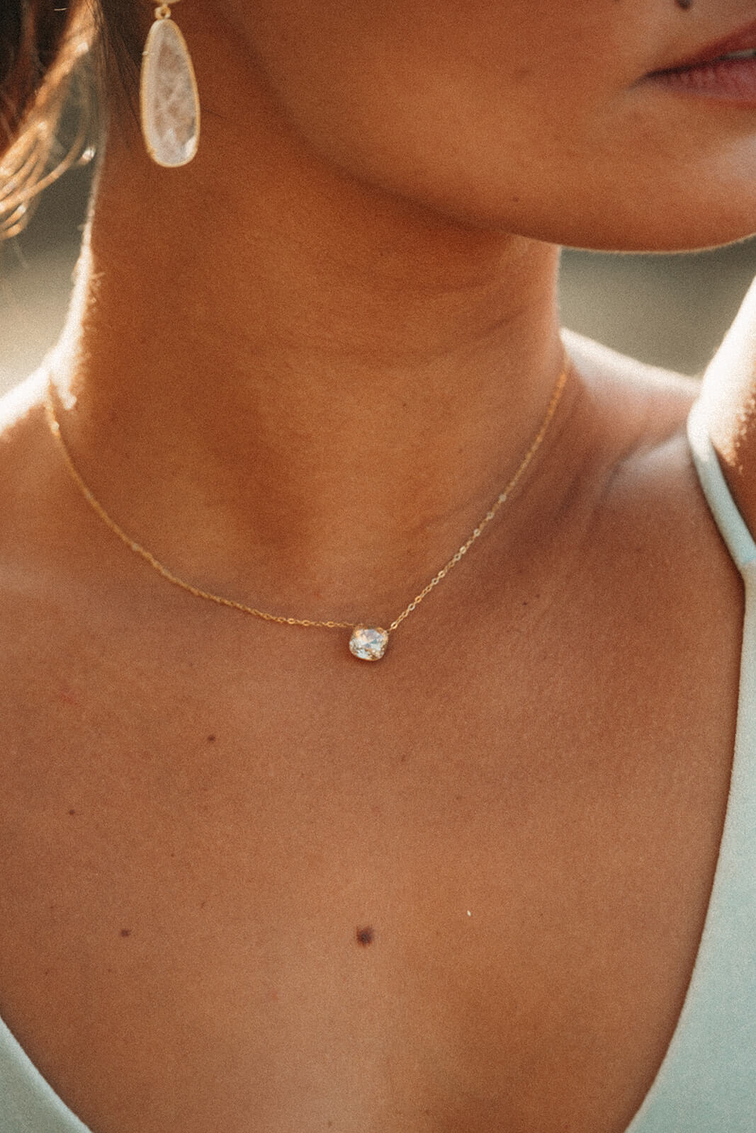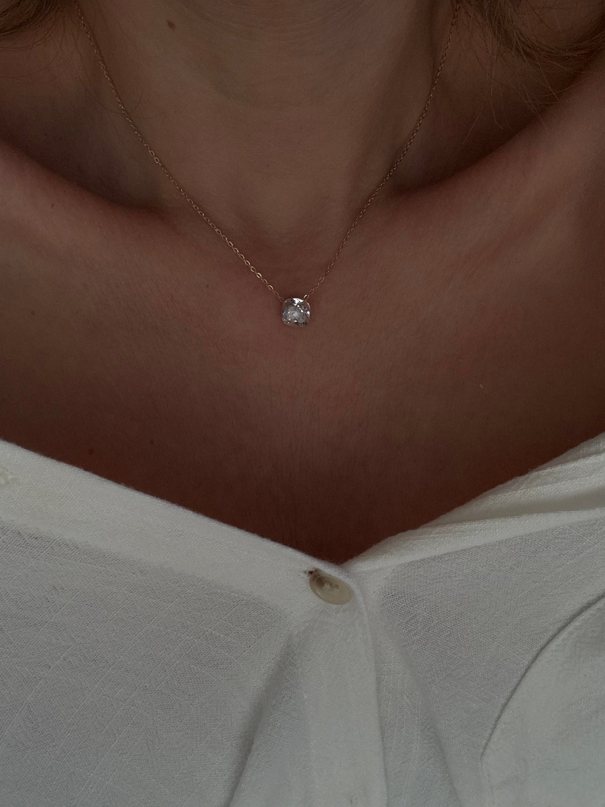 Un bijou raffiné qui capte chaque rayon de lumière et illumine le décolleté avec finesse.