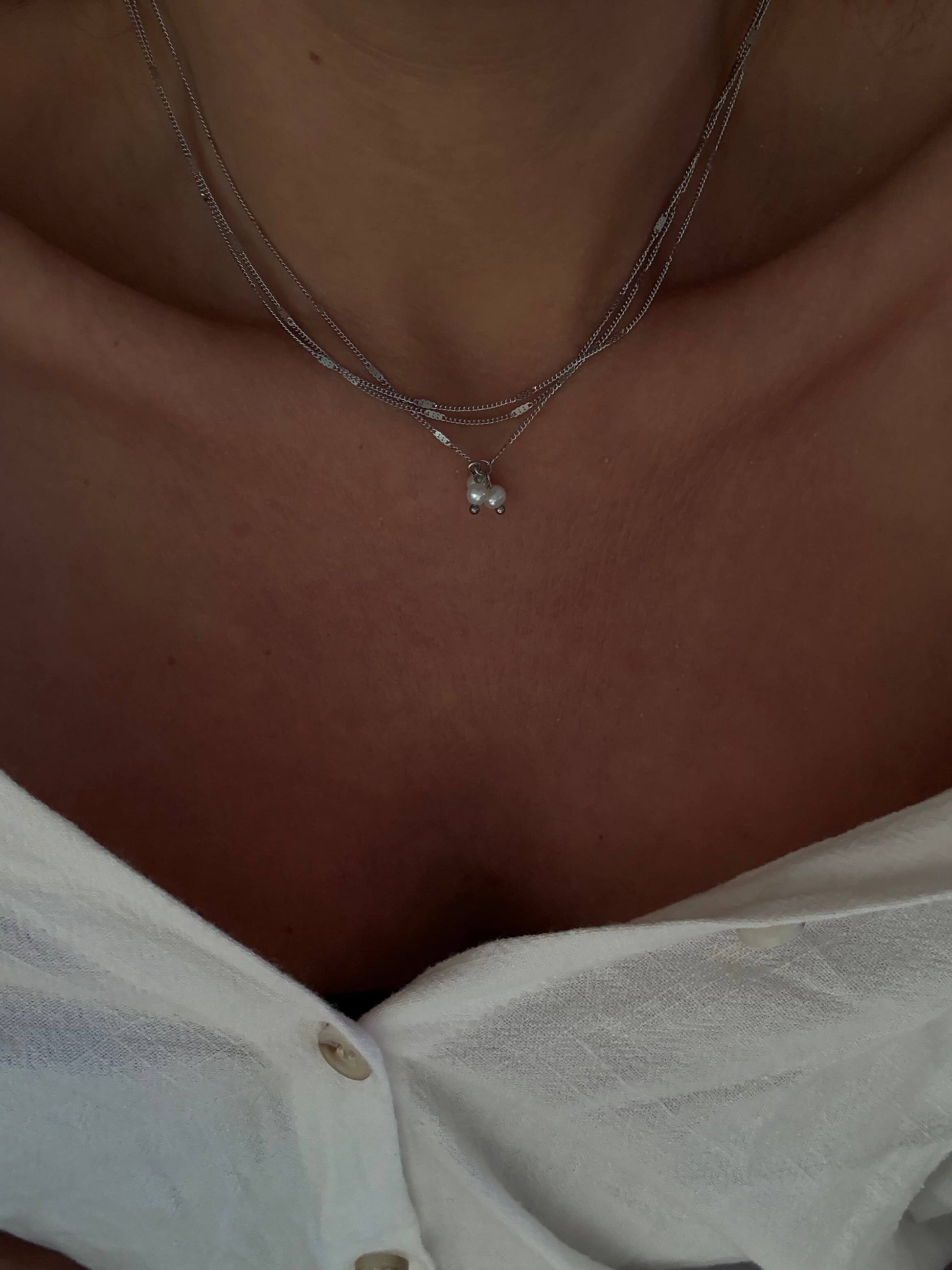 un pendentif orné de 3 petites perles d’eau douce, naturelles et uniques, qui reflètent la lumière avec subtilité.