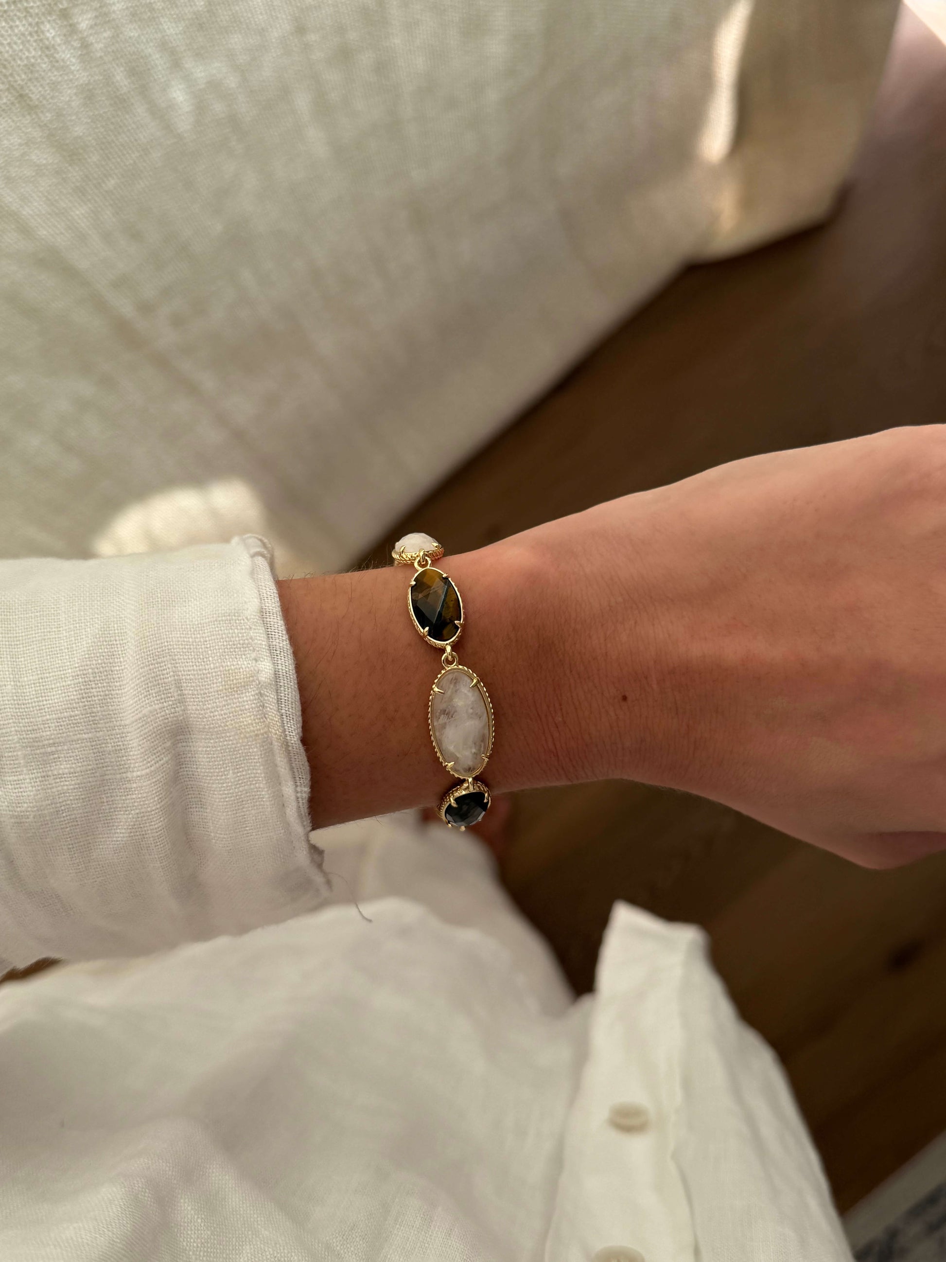 Élégant et raffiné, ce bracelet met en valeur 8 pierres naturelles ovales aux reflets uniques.