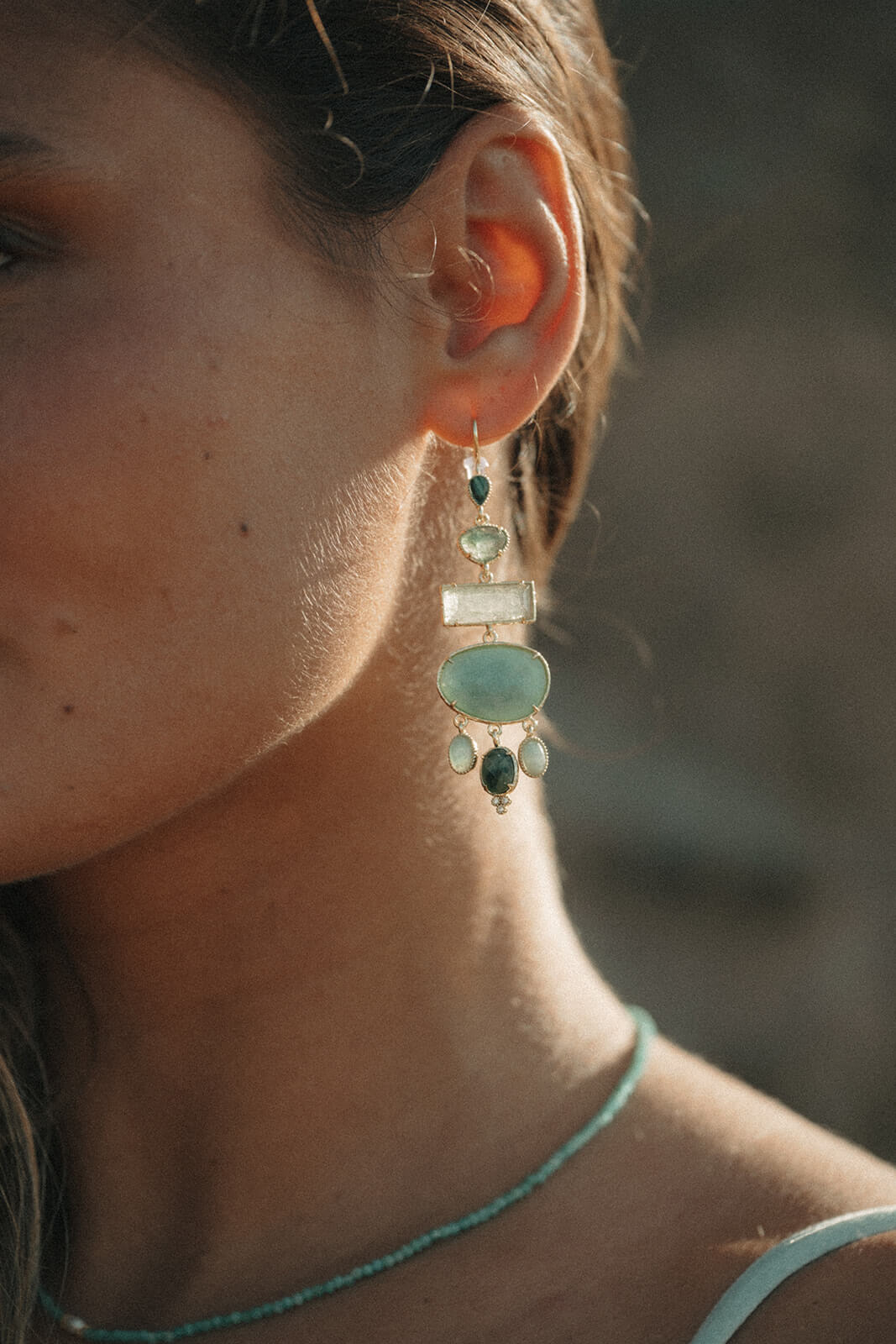 Affirmez votre style avec ces boucles d’oreilles pendantes au design audacieux, composées de pierres naturelles soigneusement sélectionnées.