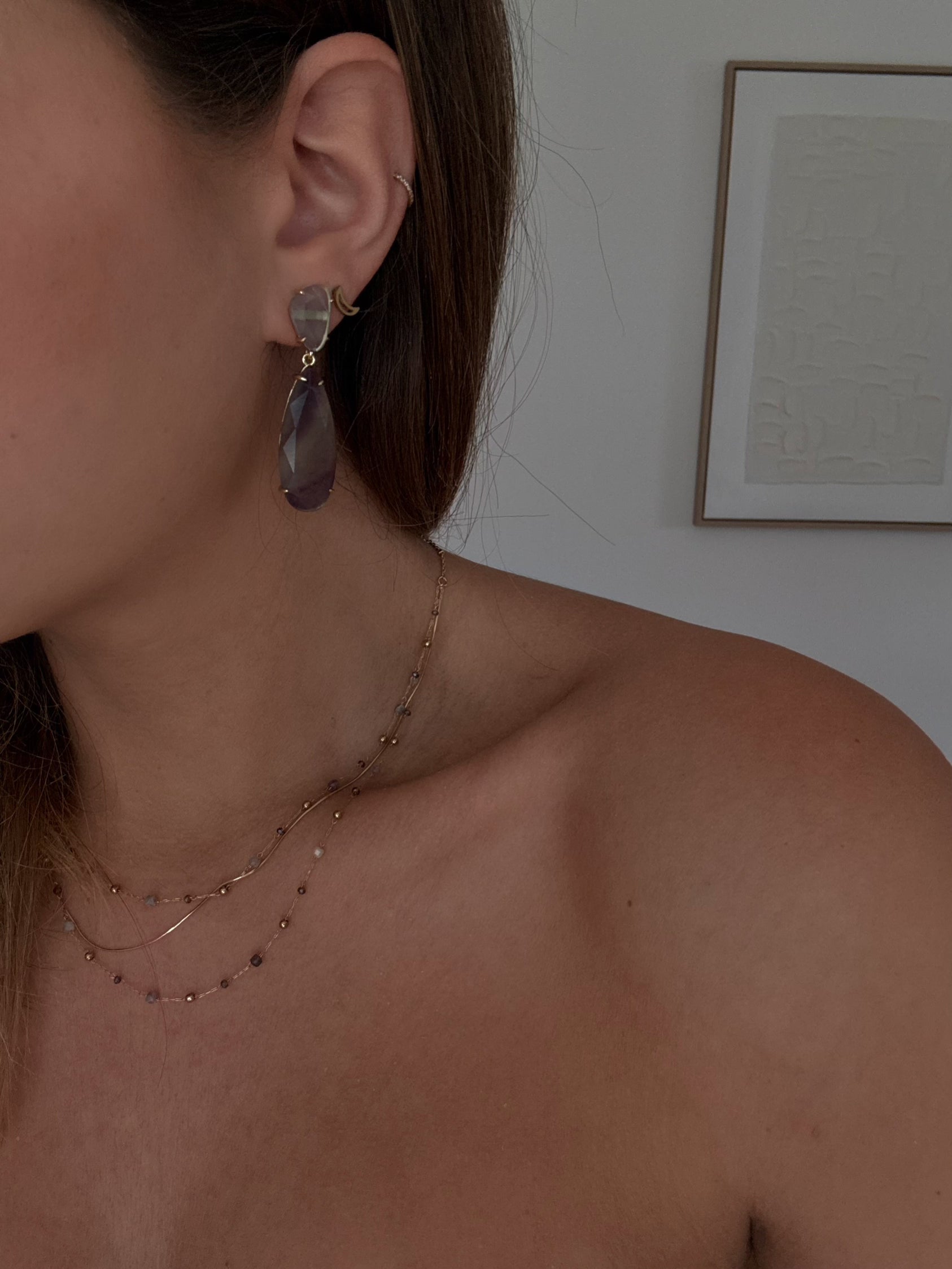 Chaque goutte de cristal de roche reflète la lumière avec subtilité, sublimée par des finitions dorées délicates.