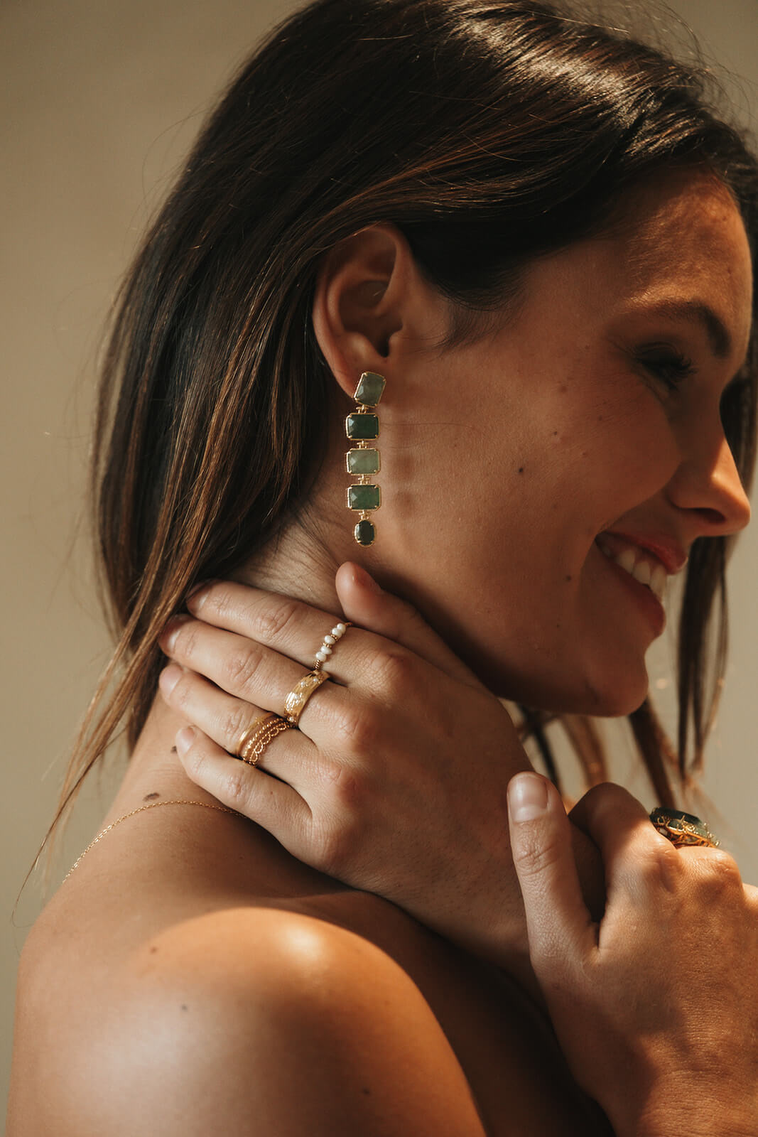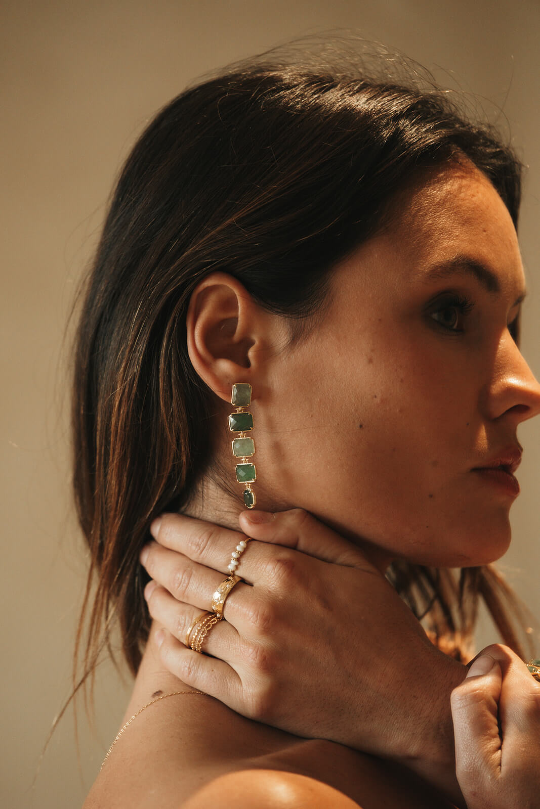 Raffinées et lumineuses, ces boucles d’oreilles se composent d’un assemblage harmonieux de pierres naturelles.