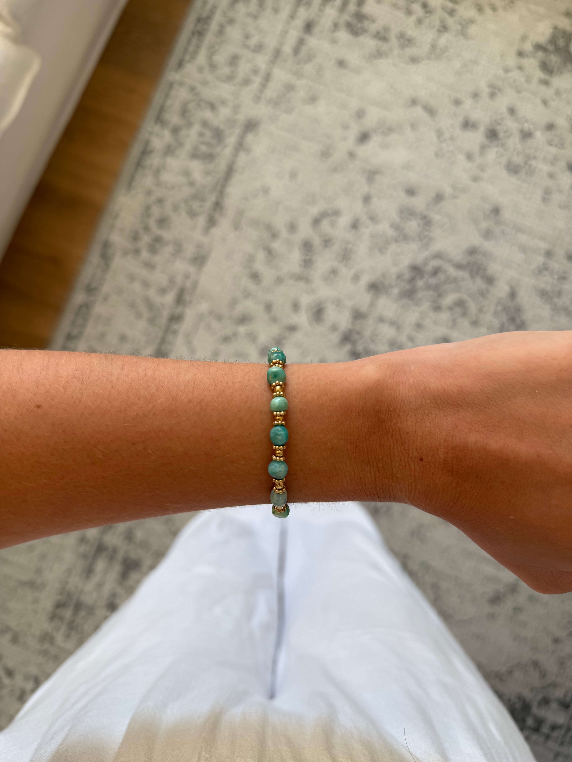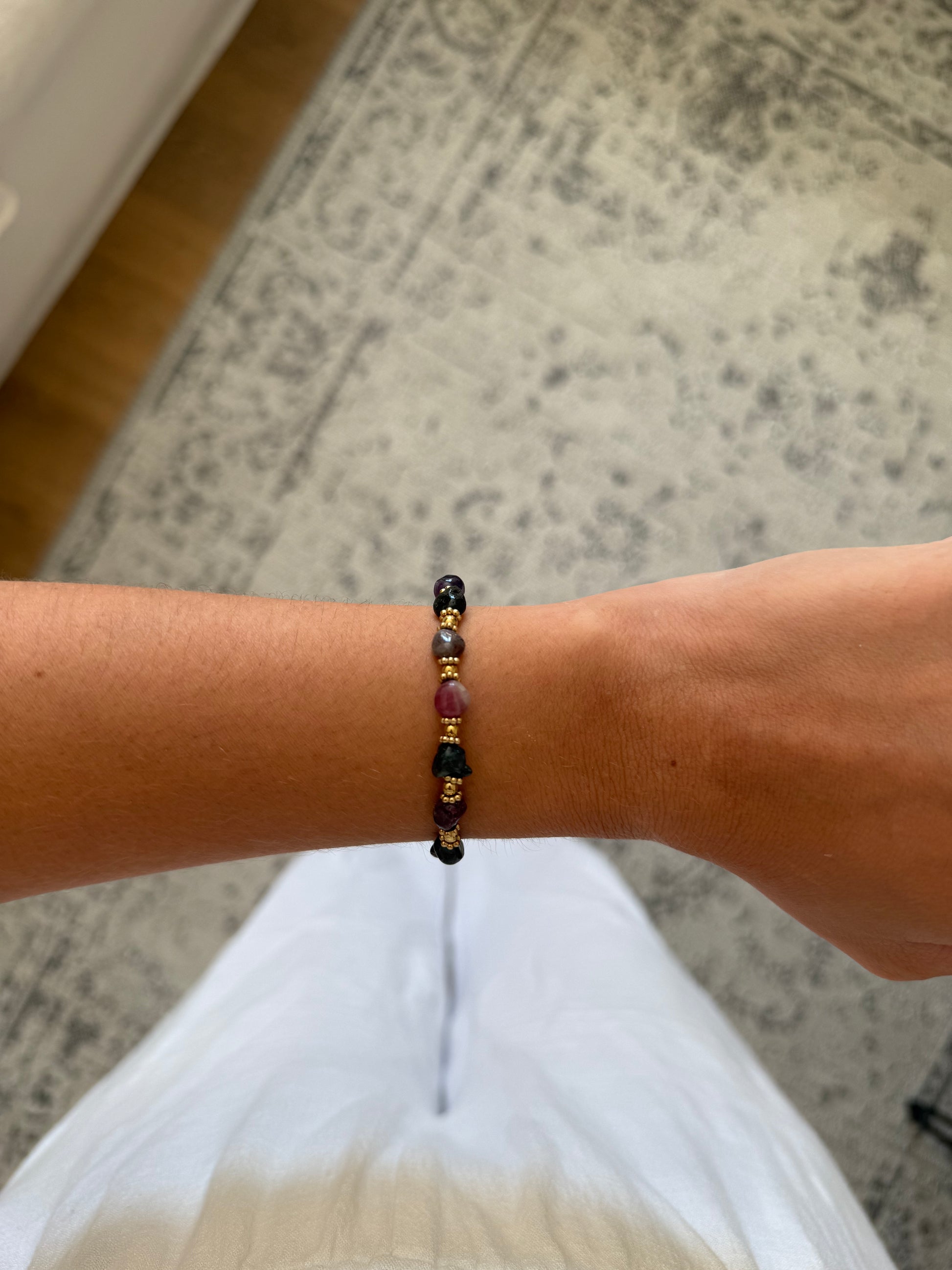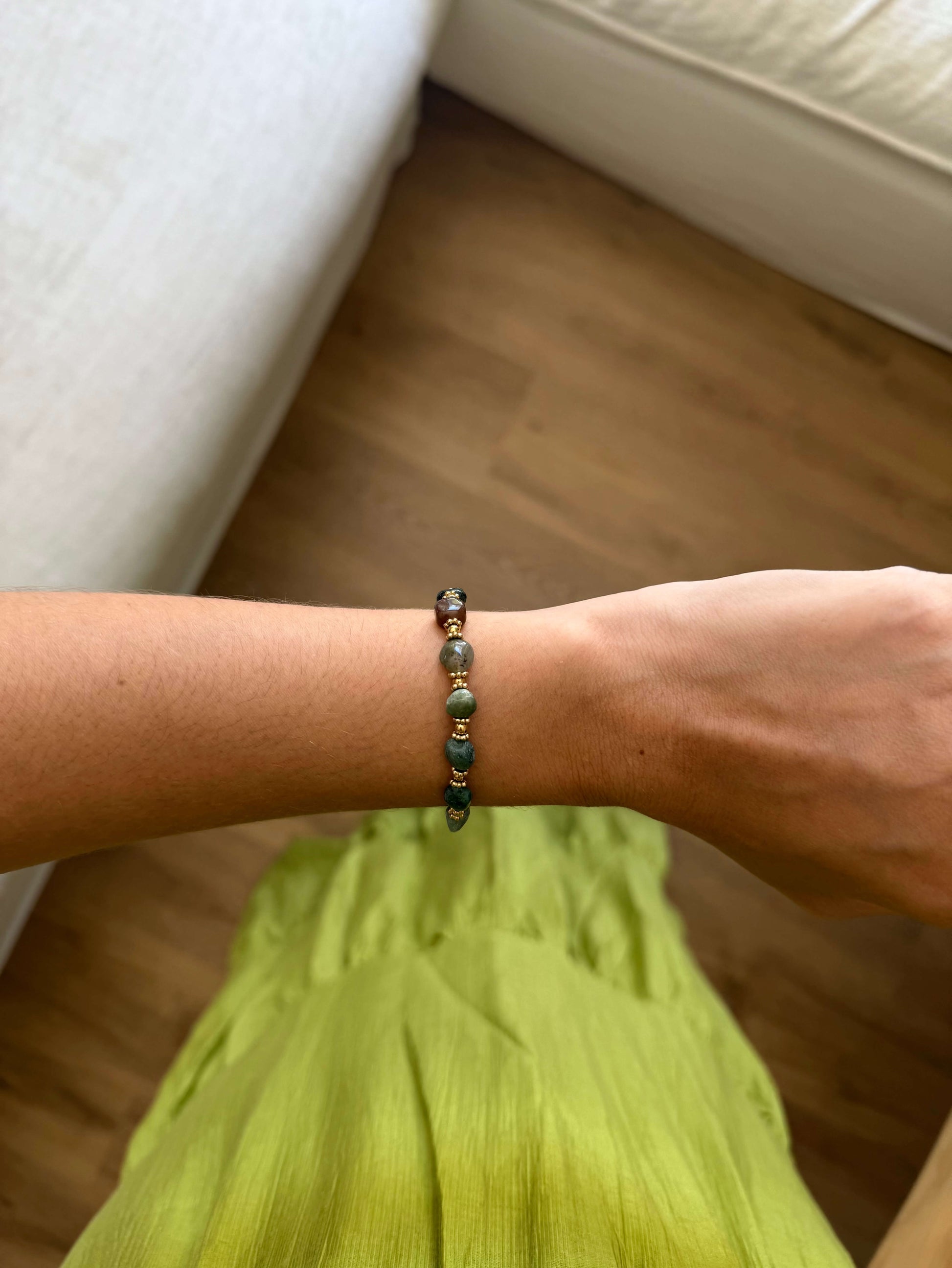 Le bracelet Lorea composé de pierres naturelles et de perles en acier inoxydable.