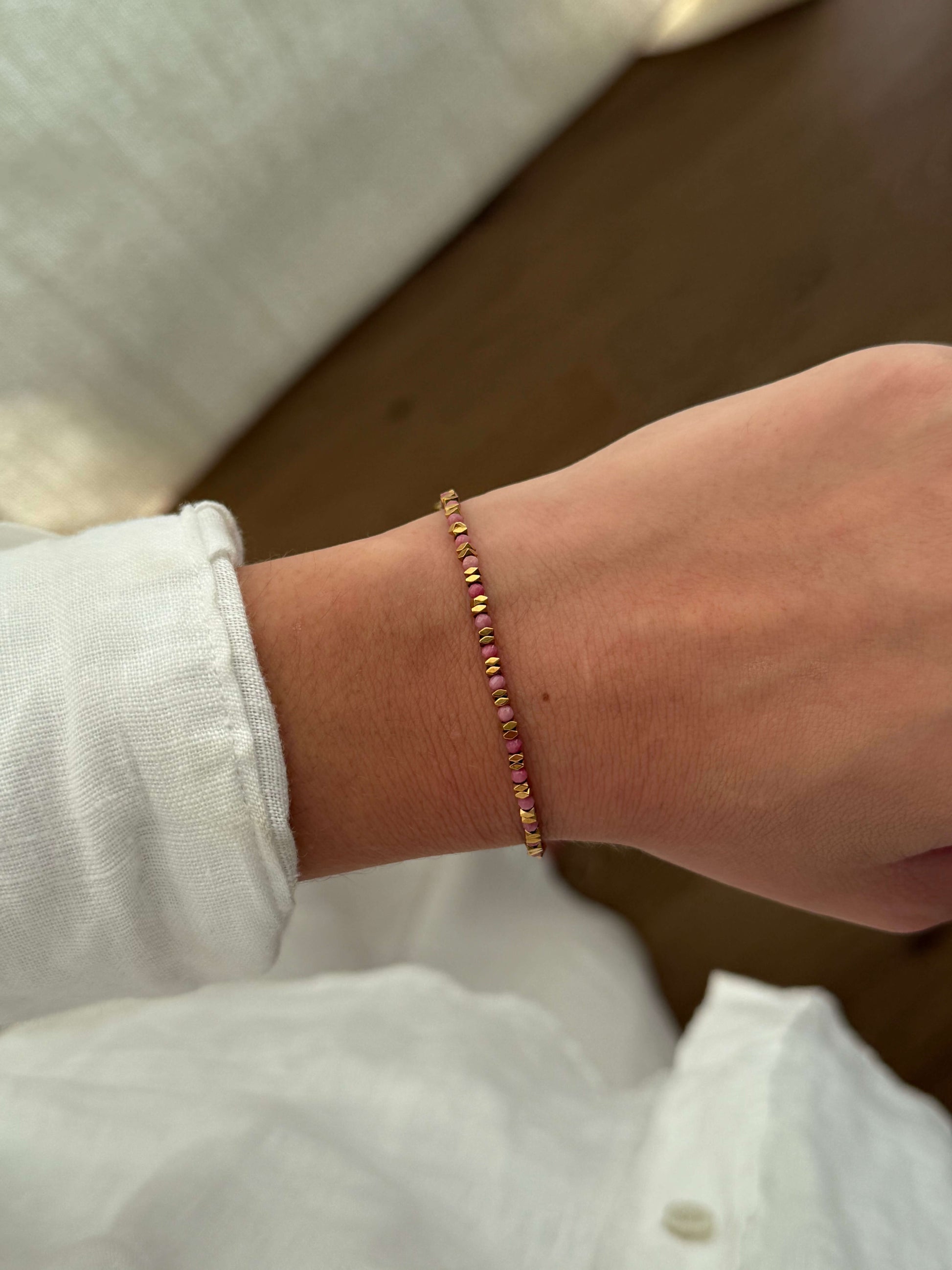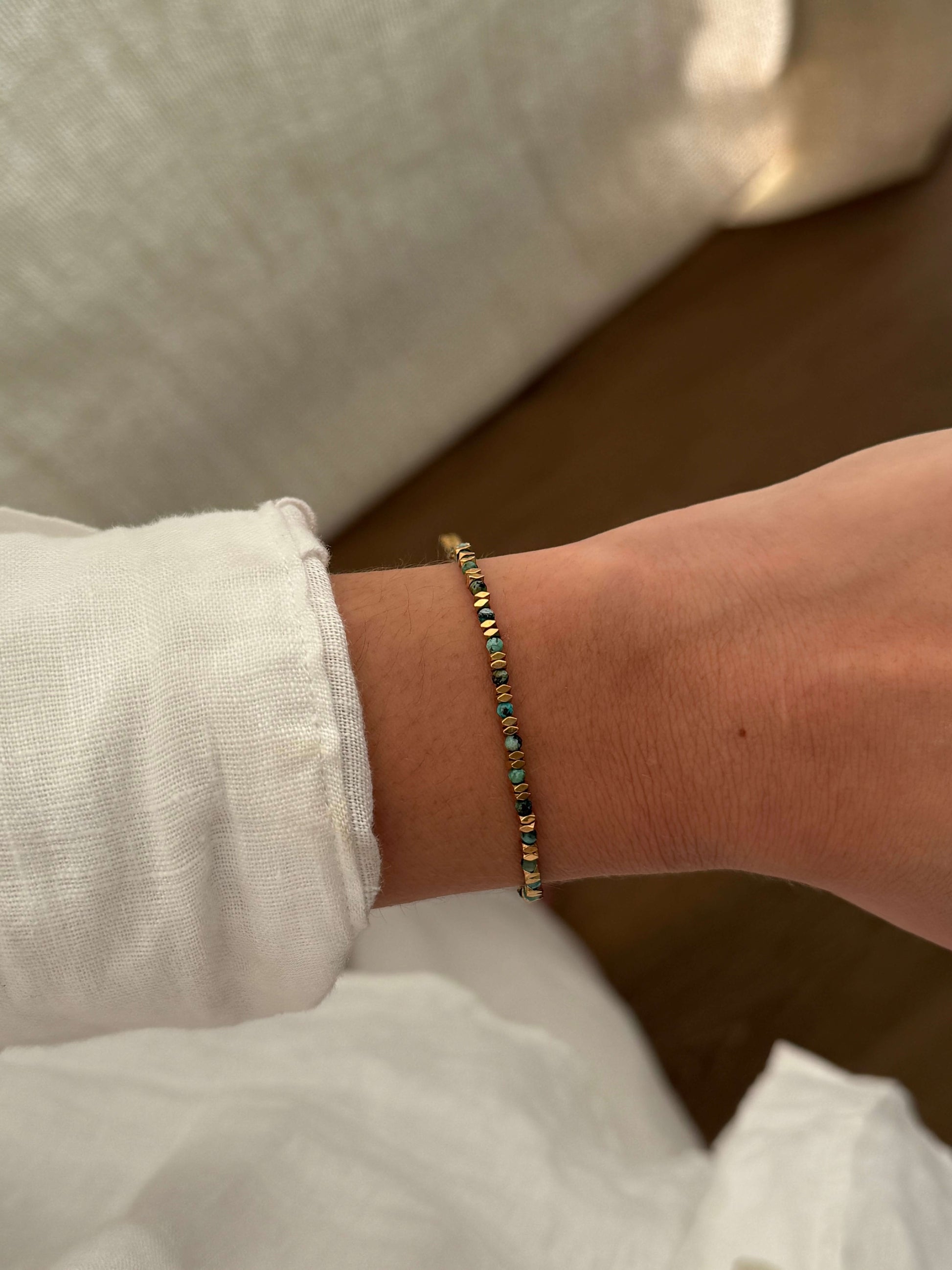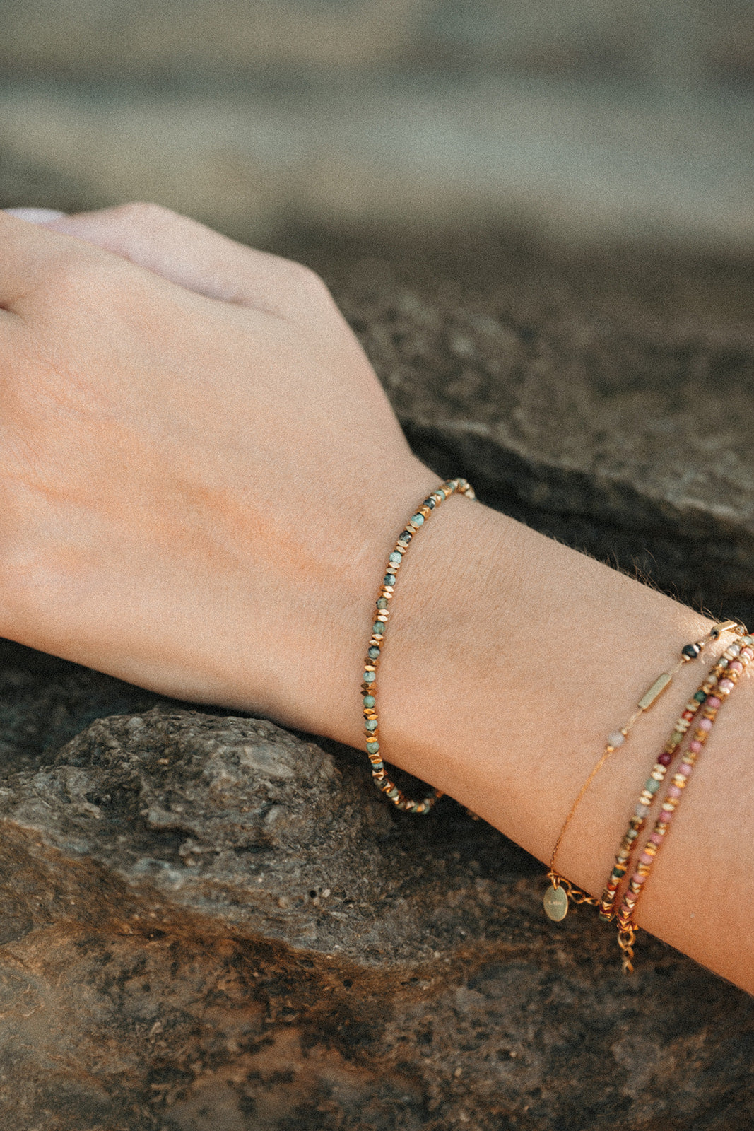 Élégant et minimaliste, ce bracelet fin en acier inoxydable se distingue par ses pierres naturelles authentiques.