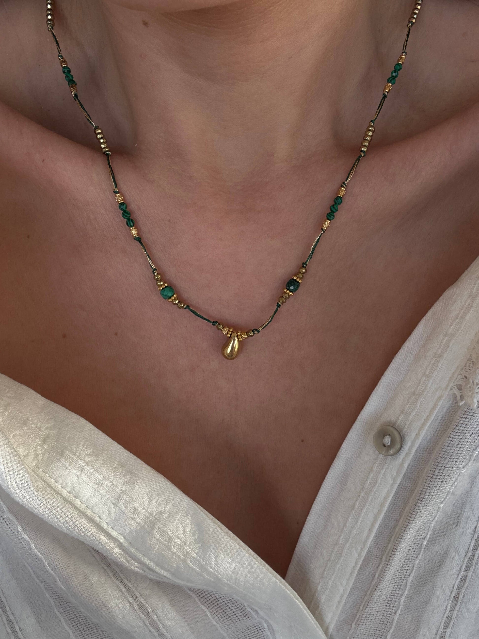 Son pendentif goutte doré apporte une finition élégante et féminine, mettant subtilement en valeur le décolleté. Léger et agréable à porter, ce collier est conçu pour être porté tel quel et n’est pas ajustable.
