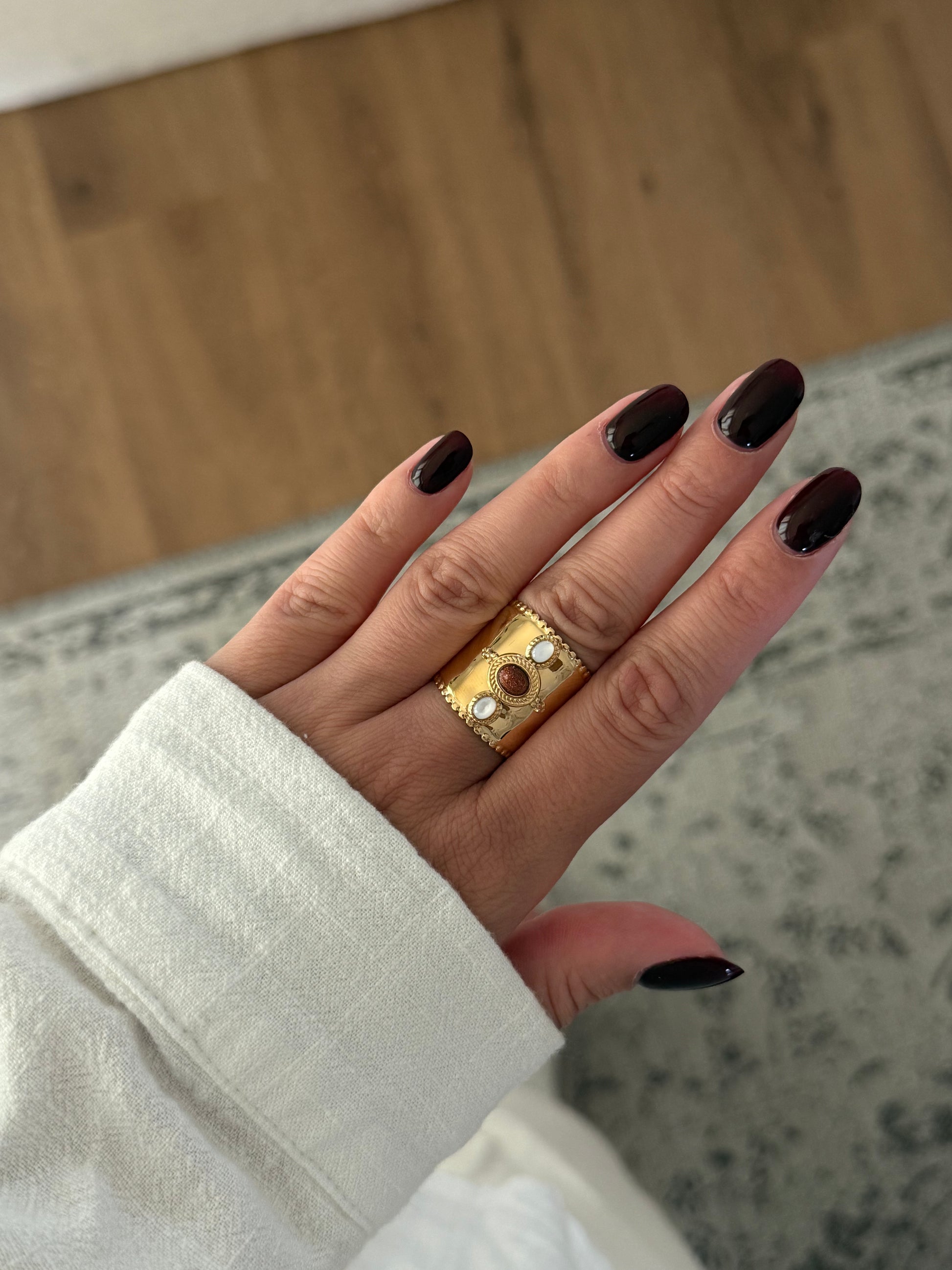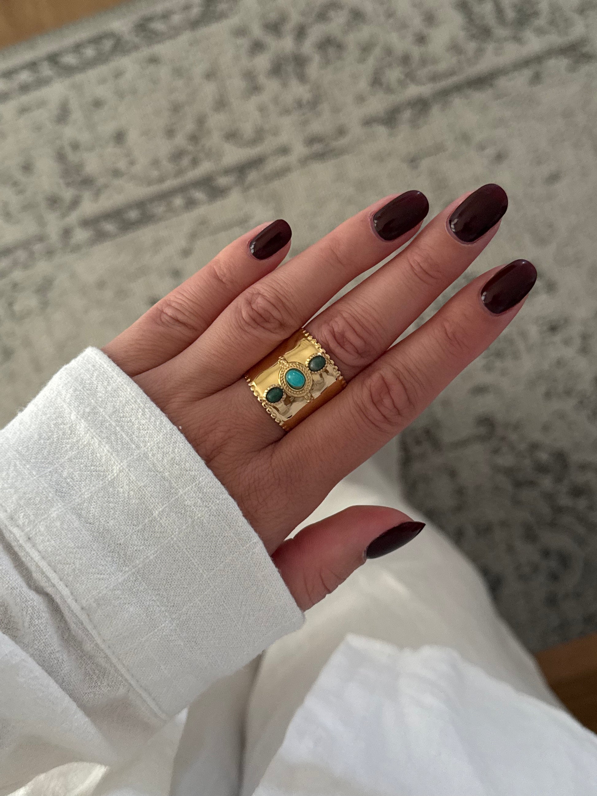 Découvrez la bague Nairobi, bohème intemporelle alliant l'élégance de l'acier inoxydable à la beauté brute des pierres naturelles.