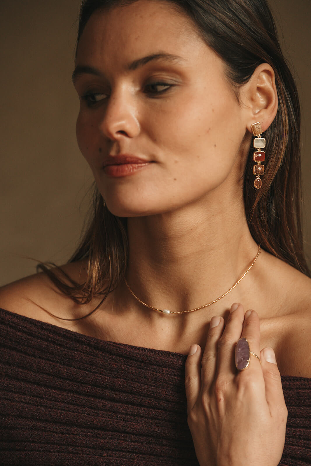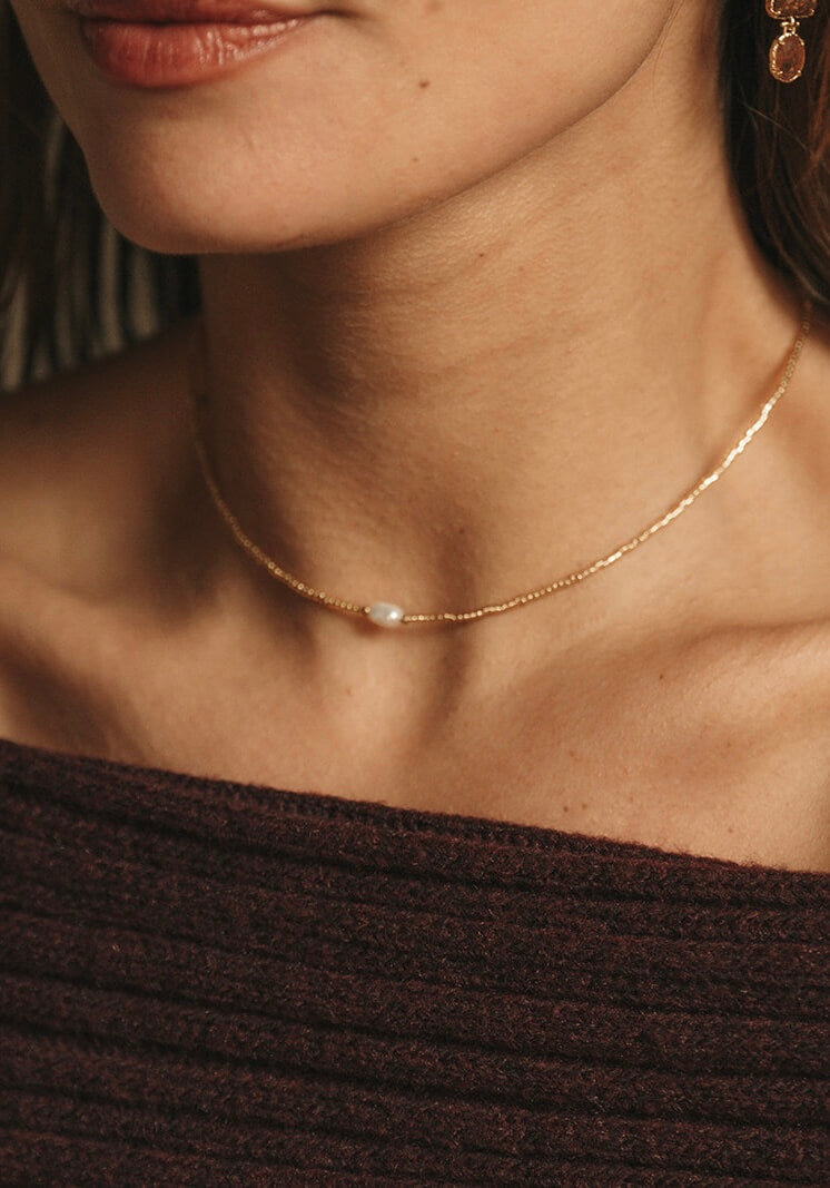 Élégant et raffiné, ce collier associe la délicatesse des perles Miyuki à l’éclat naturel d’une perle d’eau douce. Léger et minimaliste, il se pose délicatement sur la peau et illumine le décolleté avec subtilité.