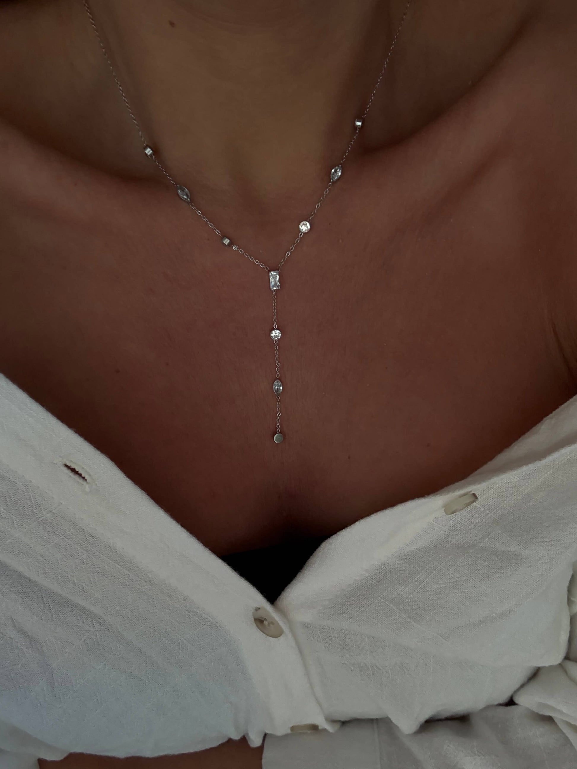 Mets en lumière ton décolleté avec ce collier en Y doré au design délicat.