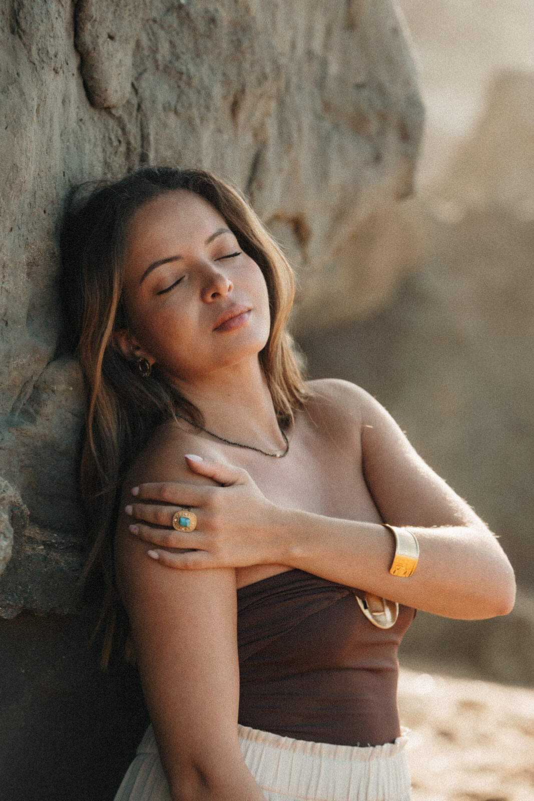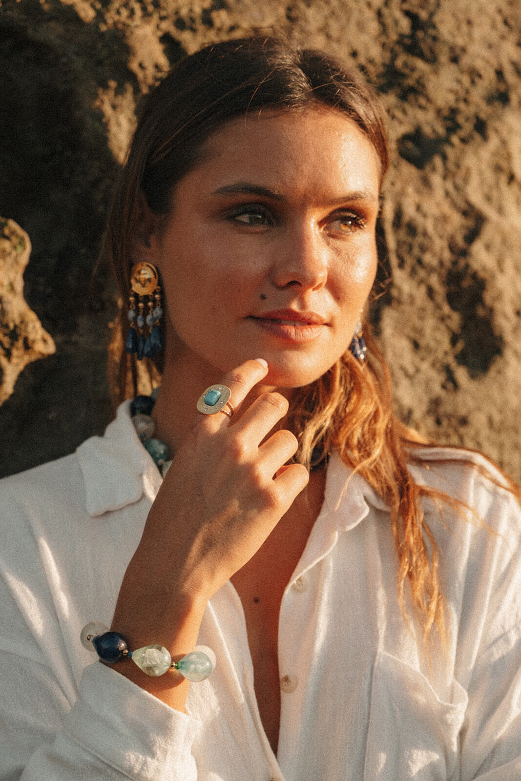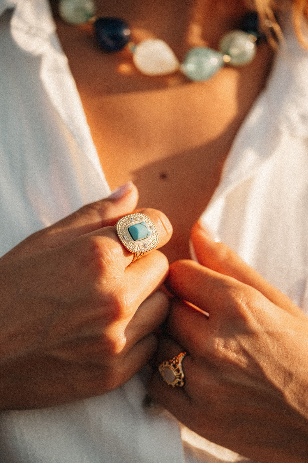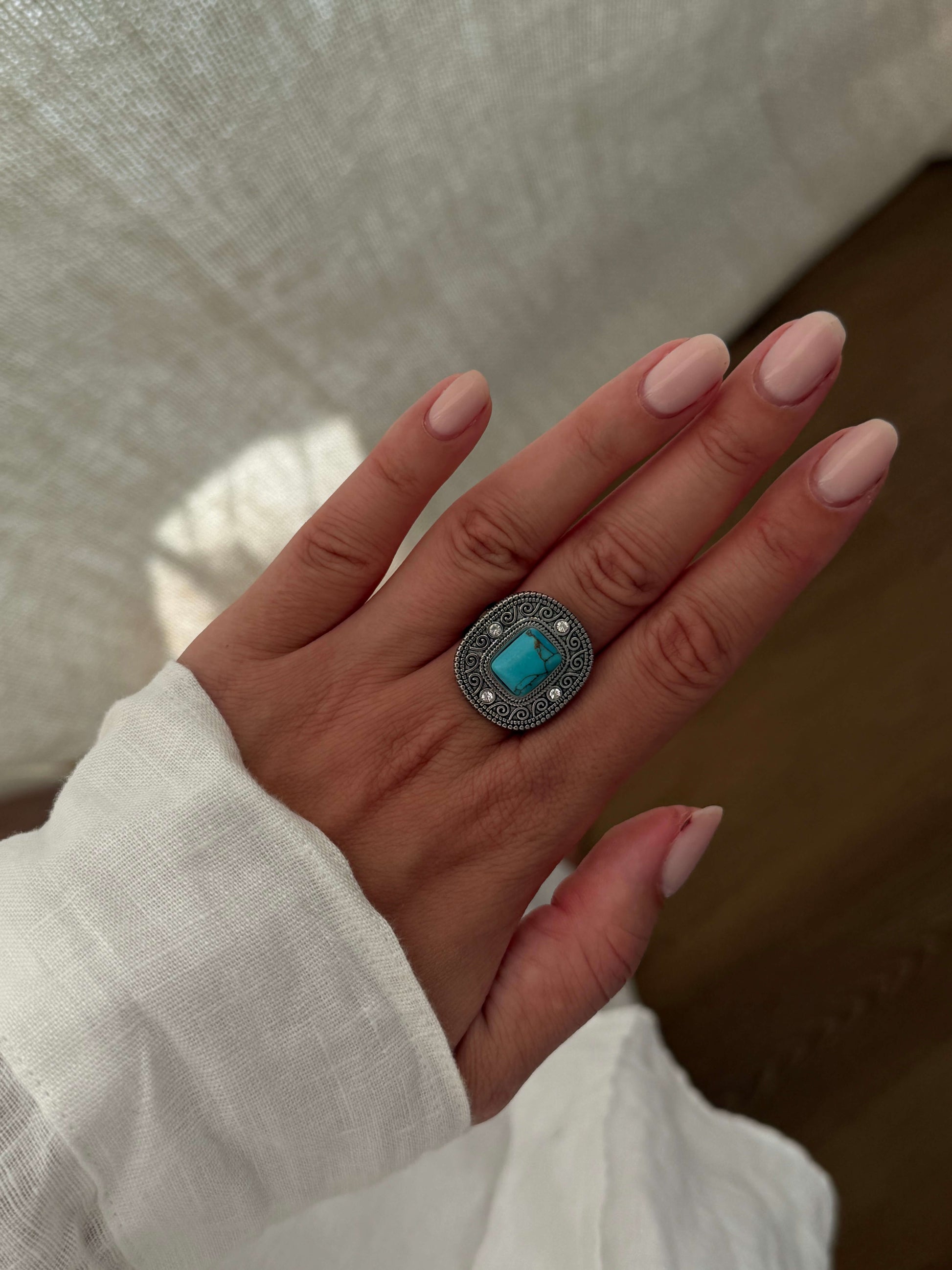 La turquoise, pierre de protection et de sérénité, fait de cette bague un bijou à la fois élégant et symbolique.