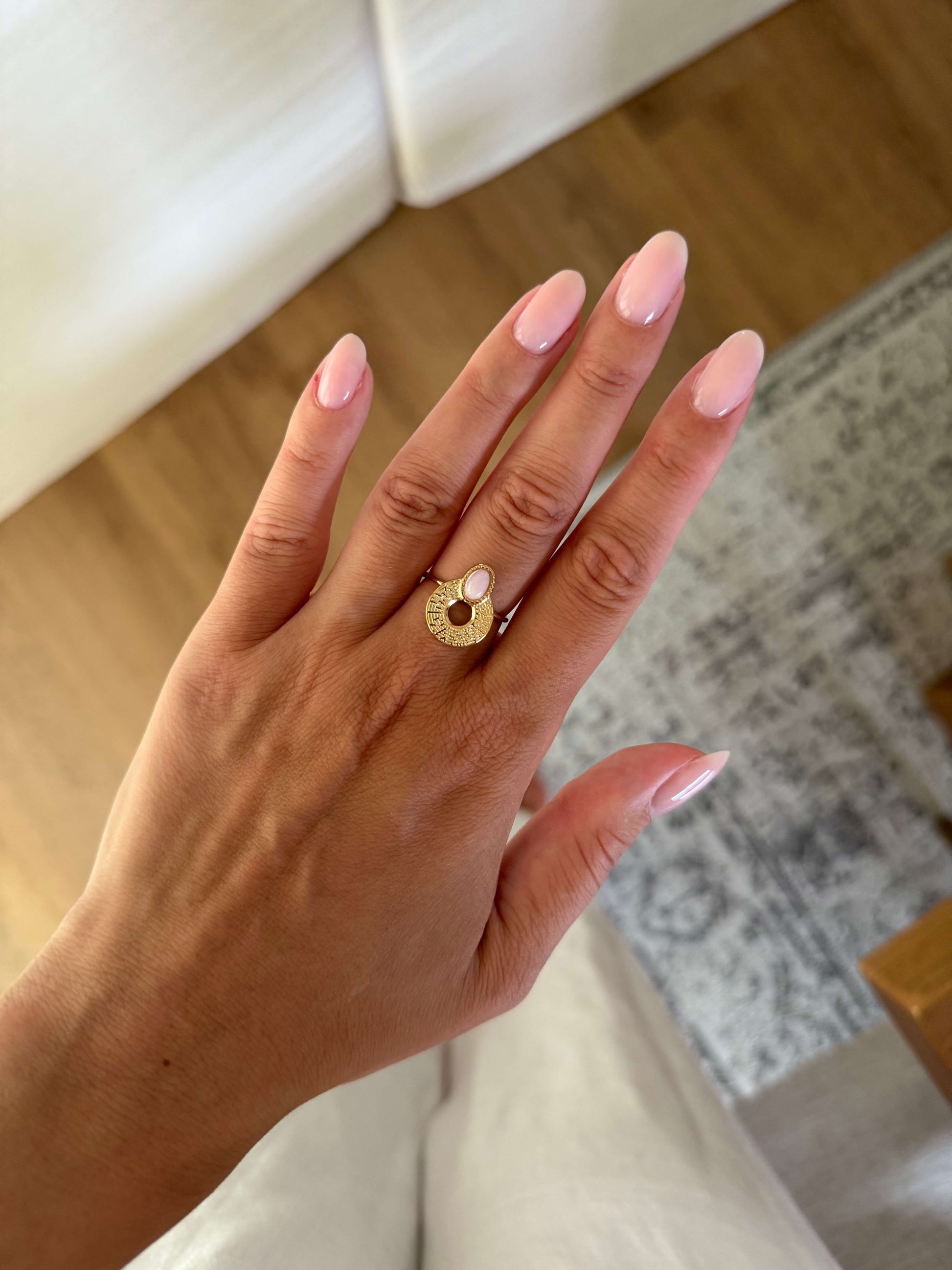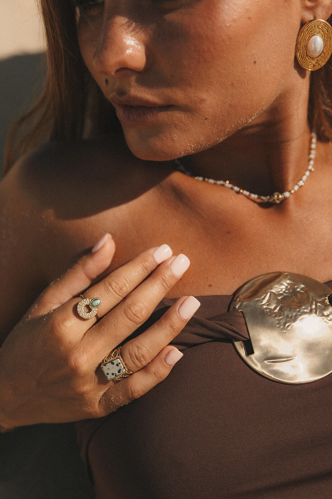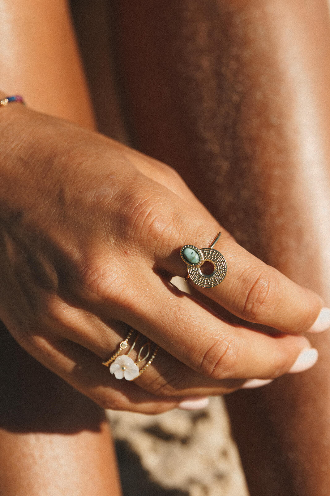 Sublimez votre main avec cette bague en acier inoxydable, rehaussée d’une pierre naturelle. Ajustable et résistante à l’eau, elle mêle style et praticité au quotidien.