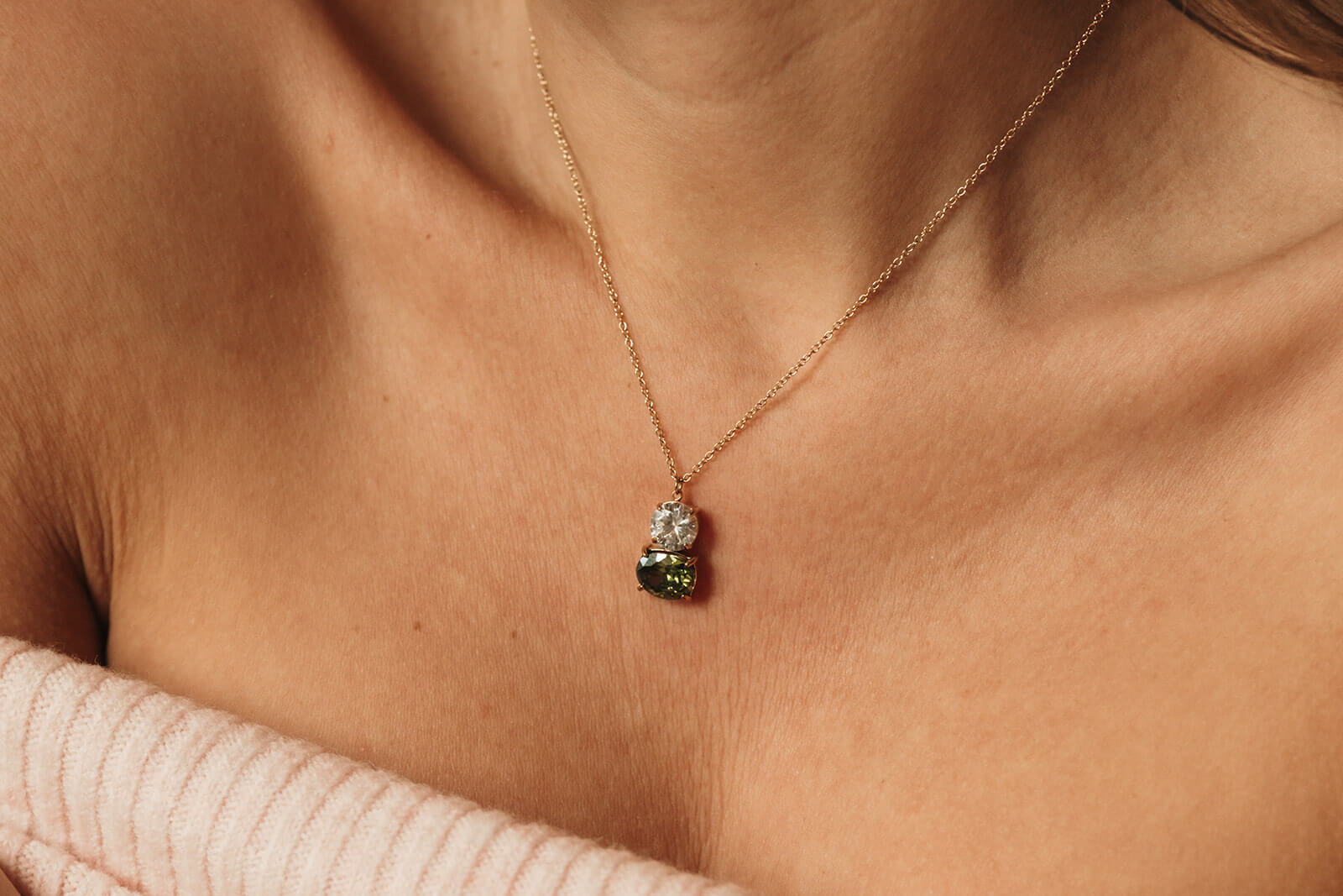 Le collier se décline également en boucles d’oreilles assorties, pour créer une parure élégante et harmonieuse.